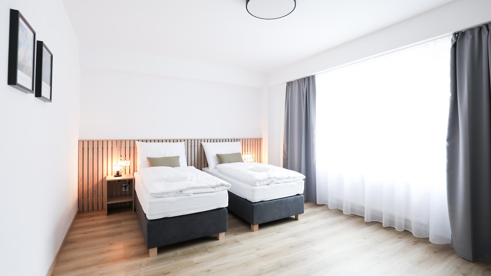 Naša izba twin štandart je izba s oddelenými jednoložkovými posteľami. Ako bonus izby disponujú klimatizáciou. Samozrejmosťou u nás nájdete nabíjacie stanice na telefón zabudované v nočných stolíkoch. Je možné do izby pripraviť aj detskú postieľku na požiadavku (detská postieľka je vhodná pre deti do 1 roka).